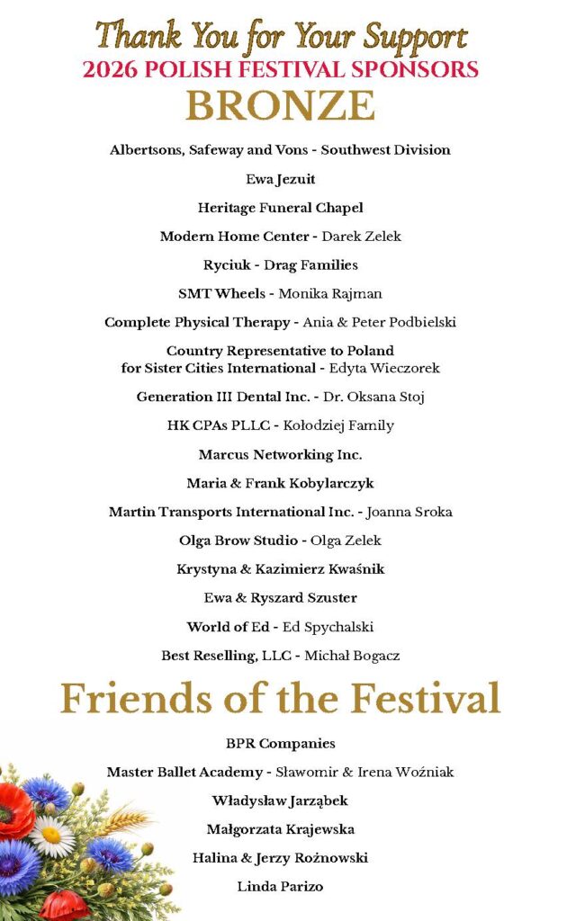 Your participation as a sponsor or supporter is vital to the success of our festival. Over the years, we have been fortunate to receive funding from esteemed businesses and organizations like yours, allowing us to create a warm and inviting atmosphere for the entire community. By joining us as a sponsor, your brand will be prominently featured in our festival materials, including our official program book, promotional materials, and social media channels, ensuring that thousands of attendees recognize your commitment to celebrating Polish heritage.